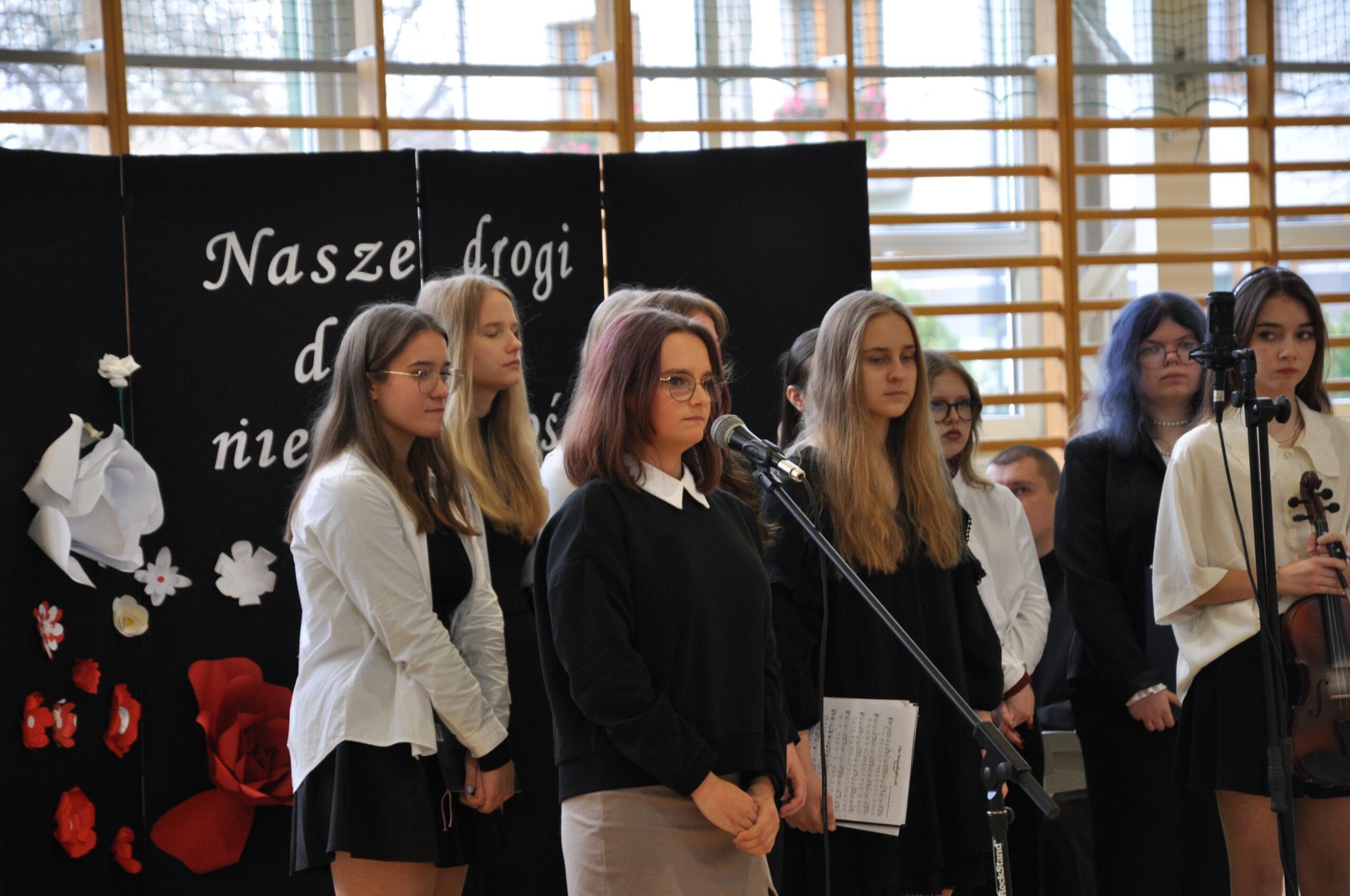 Akademia była również okazją spotkania się z poezją Antoniego Słonimskiego i Krzysztofa Kamila Baczyńskiego w pięknej interpretacji Kingi Karasińskiej i Oliwi Bugajskiej. Olbrzymią rolę w odbiorze i przyjmowaniu przesłania akademii odegrała muzyka instrumentalna wykonywana przez pianistę księdza Witolda Garbulińskiego i skrzypków Alicję Otorkowską oraz Jana Krysę. Wielki talent wokalny oraz piękną interpretację pieśni patriotycznych zaprezentowały wykonawczynie; Izabela Rokoszna, Sandra Stolarska, Zofia Ziółkowska, Aleksandra Cieślik Martyna Cieśla, Amelia Kaczmarska, Anna Skiba, Konstancja Kozłowska, Gabriela Okleka, Martyna Żylińska. Poczet sztandarowy szkoły stanowili uczniowie 3b Gabriela Górniak, Oliwia Turbakiewicz i Brajan Dybiec, który wraz z Pawłem Koprowskim odpowiadał także za nagłośnienie podczas uroczystości. Nauczyciele zaangażowani w przygotowanie akademii to: ksiądz Witold Garbuliński – kierownictwo muzyczne, Monika Stencel – scenografia, Żaneta Fiszer i Grzegorz Krysa – scenariusz uroczystości.